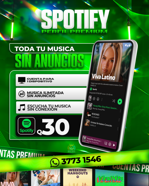 Spotify es una plataforma de streaming de música y podcasts que permite a los usuarios acceder a una vasta biblioteca de canciones, álbumes, listas de reproducción y programas. Fundada en 2006 en Suecia, Spotify ha crecido hasta convertirse en uno de los servicios de streaming más populares a nivel mundial. Ofrece una experiencia personalizada gracias a sus algoritmos de recomendación, que sugieren música basada en los gustos y hábitos de escucha de cada usuario. Los suscriptores pueden disfrutar de contenido sin publicidad, descargar canciones para escuchar sin conexión y acceder a una calidad de sonido mejorada.