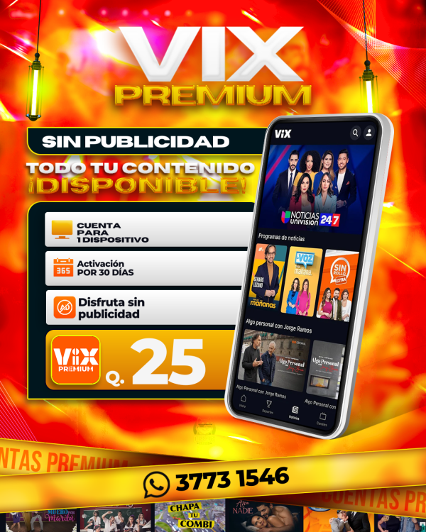 ViX Premium es el plan de suscripción de pago de ViX, el servicio de streaming en español más grande del mundo. Con ViX Premium, los usuarios tienen acceso a todo el contenido disponible en ViX Gratis, además de contenido original y exclusivo, películas, programas y deportes premium2. ViX Premium está disponible en planes mensuales, trimestrales y anuales, ofreciendo una amplia variedad de entretenimiento en español.